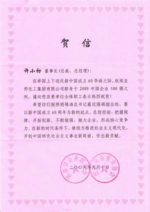 江苏省企业联合会、企业家协会给许小初董事长的贺信