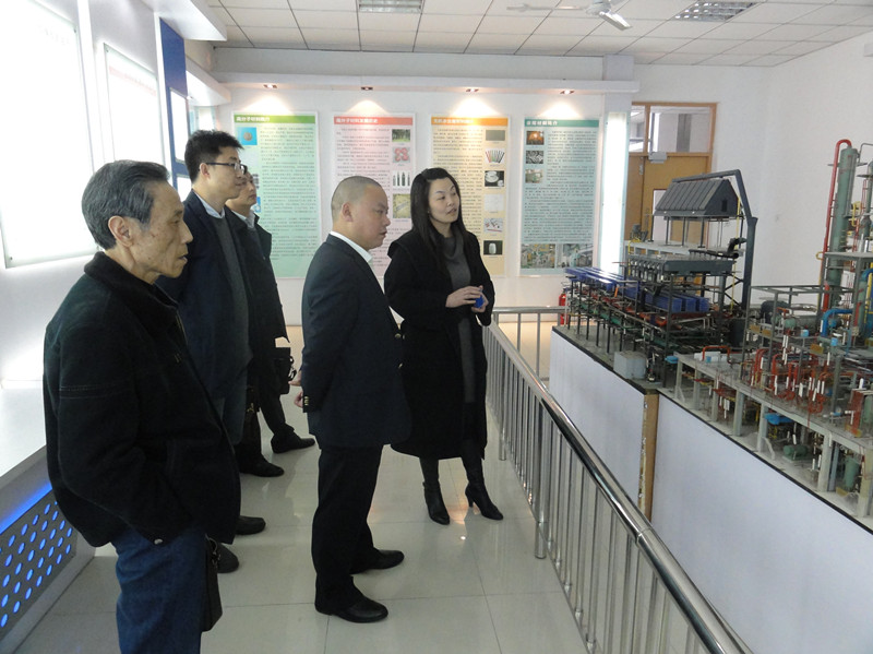 张总在常州大学石油化工学院党委副书记周刚等人的陪同下首先参观了该学院的实验楼,参观过程中张总对该学院先进的化学分析仪器和小试、中试装置赞叹不绝,并观摩了该院学生的DCS现场操作。