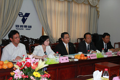 上午8:30,双方在集团总部餐厅二楼小会议室展开商谈,东洋科美公司社长柏岡元彦、富士工厂厂长大狱修、色材·机能销售统括部长田村俊河、珠海东洋油墨总经理张廷玮、亚邦颜料产业总经理张华、宣城亚邦化工有限公司常务副总汪国建等参与会谈。