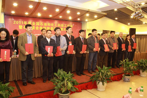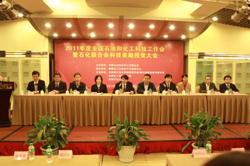 为了鼓励和推动中国化工企业开展技术创新、产品创新和制度创新,不断提升核心竞争力,树立化工企业技术创新典型,建立化工行业以企业为主体,产、学、研相结合的技术创新体系。2011年度全国石油和化工科技工作会暨石化联合会科技奖励授奖大会在四川成都隆重召开。会上表彰了2011年度中国石油与化学工业联合会获奖的单位和个人,中国石油和化学工业联合会经^评审,领导小组审查,媒体公示共同认定“中国化工行业技术创新示范企业” 46家,其中江苏染料股份公司“中国化工行业技术创新示范企业”复审通过,石化联合会副会长周竹叶和部委等相关领导为获奖的单位和个人颁发证书及奖牌。