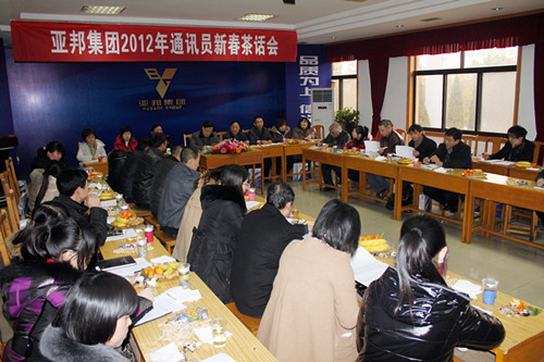 ^后,到会的领导们对通讯报道工作作指导。杨总表示,《今日亚邦》获得“江苏省十佳企业期刊”称号来之不易,也当之无愧。《今日亚邦》从90年创刊以来,坚持23年办刊,随着企业的发展刊物得到了健康发展。如今内容越来越丰富了,文章越来越精彩了,图片越来越清晰了,设计越来越赏心悦目了;杨总对《今日亚邦》保质保量按时出版表示满意,并对辛勤工作的所有人员表示衷心感谢;他对大家提出了新的希望:通讯员要伴随刊物的成长而成长,珍惜机会,开阔思路,提高业务能力,关注亚邦的品牌建设,提炼亚邦文化内涵,使《今日亚邦》成为亚邦品牌效应的一个窗口。其他领导也分别对《今日亚邦》取得的成绩表示祝贺,并对通讯员们致以真诚的新年寄语。