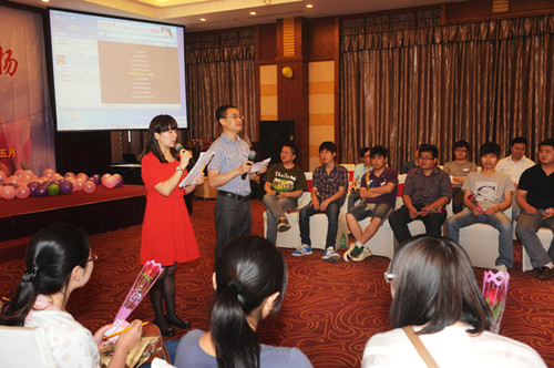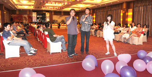 浪漫的5月,亚邦青年员工将在激情飞扬的舞台上演奏出华彩乐章。18日下午,100多位男女青年员工欢聚在常州九龙云天大酒店师源厅,这里华光异彩,甜蜜弥漫,音乐醉人,来自我集团不同产业的青年们,大部分相互并不熟悉,或兴奋、或羞涩、或忐忑、或淡定……种种表情表露在脸庞上,这就是亚邦青年员工的初次见面。随着主持人胡灵敏、洪庆开场白的引导,“2012年亚邦集团青年员工联谊会”正式开始。