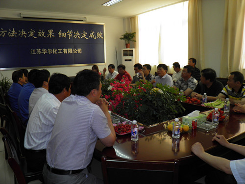 华尔总经理王志平首先对参观团的到来表示热烈的欢迎,并向来宾简要介绍了公司的发展历程、经营状况。随后,安全副总冯忠宇通过幻灯片图文并茂的向参观团汇报了安全标准化工作在华尔的具体实施情况。钟楼区安监局领导听取汇报后给予了高度的赞扬和评价,认为华尔作为一个新建企业,能在投产一年内就通过了安全标准化三级达标验收非常了不起。随行的企业代表就安全标准化工作实施过程中遇到的一些问题和困难向华尔相关人员作详细咨询,双方对提出的问题进行了深入探讨,通过交流,双方对安全标准化工作如何更好的实施有了进一步的见解。