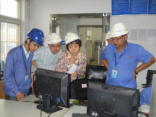 听完介绍以后,检查组对亚邦化学在清洁生产中的巨大投入和产生可喜的经济效益感到欣慰,随后在孙总等的陪同下实地观察了顺酐尾气蓄热焚烧吸收装置。孙总指着路边的绿化说,在顺酐尾气没加吸收之前,装置周围的花草经常会枯萎,而现在长得是郁郁葱葱、生机盎然。这是空气质量明显好转的有力证据。在顺酐一、二期DCS控制室,大家现场观摩了尾气焚烧吸收装置(RTO)自动控制平台,在电脑显示屏上看到每套RTO能产生5吨/小时的蒸汽,说明了企业搞清洁、环保生产是个双赢的过程,检查组人员会心地笑了。