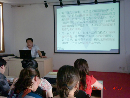 本次培训主要针对2010版GMP条款内容及实施进行了全面梳理,总经理助理张晓明,质监部殷茂华部长、质监员颜晓梅,生产部缪玉萍部长,仓库吉二林主任,办公室主任刘海燕以及车间主任陈莉、殷云霞,化验室主任潘银平分别从质量管理、设备管理、现场管理、生产管理、机构与人员、物料管理、卫生管理等方面为大家从深层次、多角度解读了新版GMP的内容和实施要点,重点对变更控制、偏差处理、质量回顾、药品生产的风险管理等新版GMP核心内容进行了讲解,并与现场学员进行了互动交流。公司常务副总经理杨绪跃在培训会作了重要讲话。
