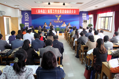 《亚邦志》设18章,完稿预计50万字,用时两年左右,全面记录从1983年到2012年12月亚邦的发展历程。编好《亚邦志》是全体亚邦人的共同责任。办公室主任周苏云要求与会代表及时、准确、全面的提供编志需要的材料。
