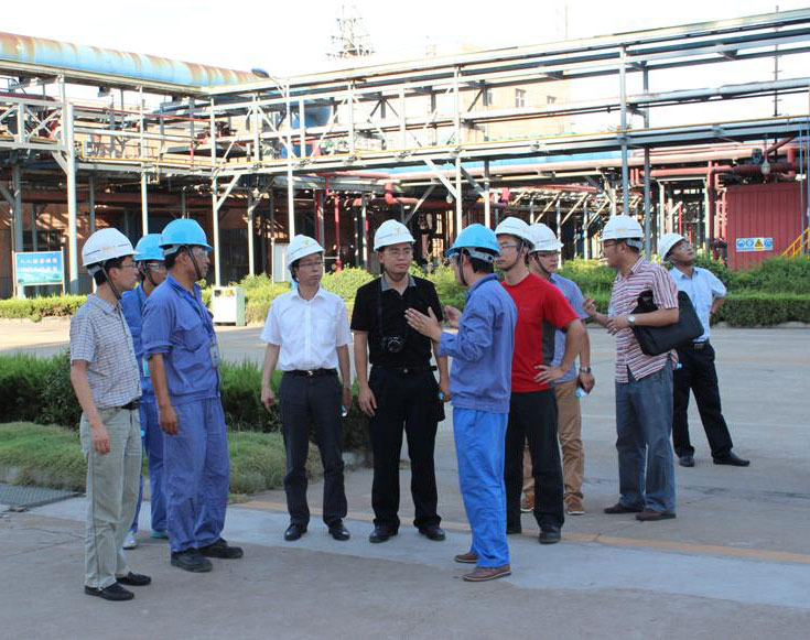 调研小组下车后直奔生产现场视察,在东西向大道北侧废气治理标志牌旁边,大家听了何卫东部长关于顺酐尾气治理的设计原理、运行效果以及在行业中起到^作用的介绍。大家对亚邦化学在顺酐废气治理上取得的社会效益和经济效益的双赢表示非常赞赏。