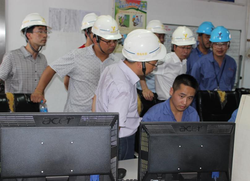 接着调研组一行走进了顺酐一、二期控制室,大家看到的是亚邦化学一、二期顺酐生产六套DCS的控制系统和两套尾气焚烧吸收装置的PLC自动控制系统。在电脑旁感受了密闭化、信息化、自动化的控制给安全、环保生产带来的便利,亲眼目睹了每套顺酐尾气焚烧过程中,每小时还能产生5-6吨/蒸汽的事实。在实实在在的数据面前,对亚邦化学一举两得的环保治理方案表示了充分的肯定和浓厚的兴趣。