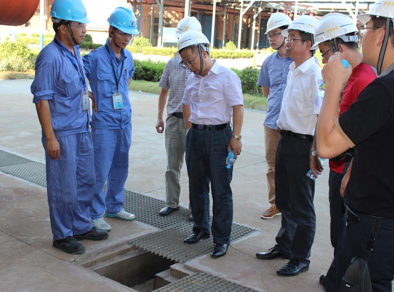 随后在顺酐一期装置东面大家看到了装置周围一圈不锈钢环沟,就向陪同视察的毛国强部长了解情况。毛部长向客人介绍了环沟的两个作用:一是防止污水渗入泥土,保证雨、污水彻底分流:二是在装置发生突发事件时可以收集应急处理的废水,并可以及时转移到事故应急池。