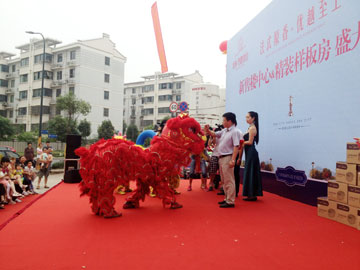 6月22日的龙涛·香榭丽园新接待中心红装素裹、彩球飘扬。早上8点,前来祝贺的广大朋友早早到场,新售楼处门庭若市、人生鼎沸,舞台区座无虚席,伴随着礼炮鸣响、锣鼓喧天,两只活力十足的祥狮登上舞台开始翩然起舞……霎时间整个现场形成了一片喜庆祥和的景象;8点30分,主持人登台致开场辞,随后龙涛房地产的领导上台致辞并为祥狮点睛,随着“宏伟蓝图狮庆舞,举世乾坤同地久”对联展现在众人面前,龙涛·香榭丽园新售楼处开放典礼正式拉开帷幕。除了好听好看的歌舞表演外,龙涛房地产为大家准备了激动人心的抽奖活动,整个活动掌声连绵不断、尖叫声此起彼伏,给广大朋友带来一场激动人心的活力盛宴。