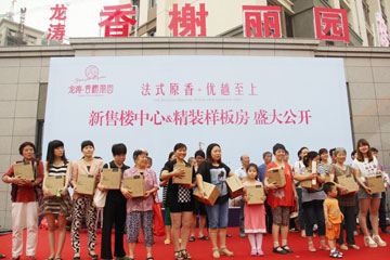 无论是新售楼中心还是样板房都可谓是精雕细琢,大到炫目的水晶灯、充满质感的石材墙壁,小到地砖上勾勒的美丽花纹,无不诠释着龙涛房地产的良苦用心。活动当天龙涛房地产为回馈广大客户,还准备了大量奖品给客户抽奖,每个客户都笑容可掬,满载而归,好评如潮!